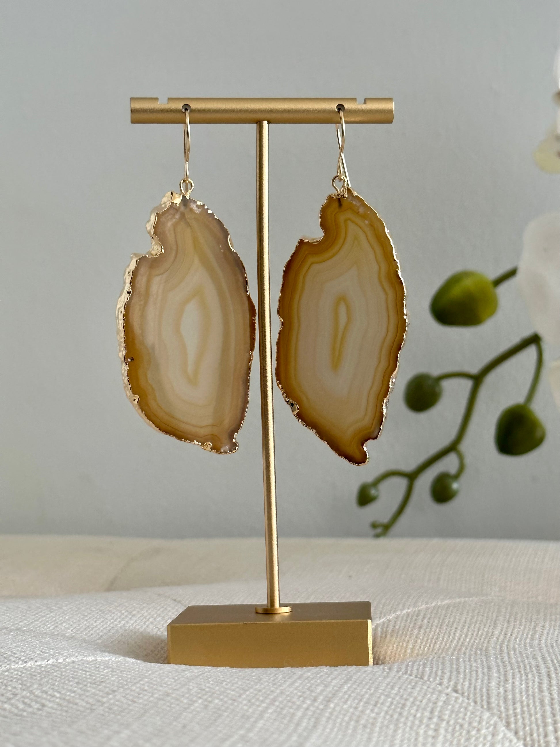 Material: Golden brown agate stone with gold coated edges, gold filled wire.