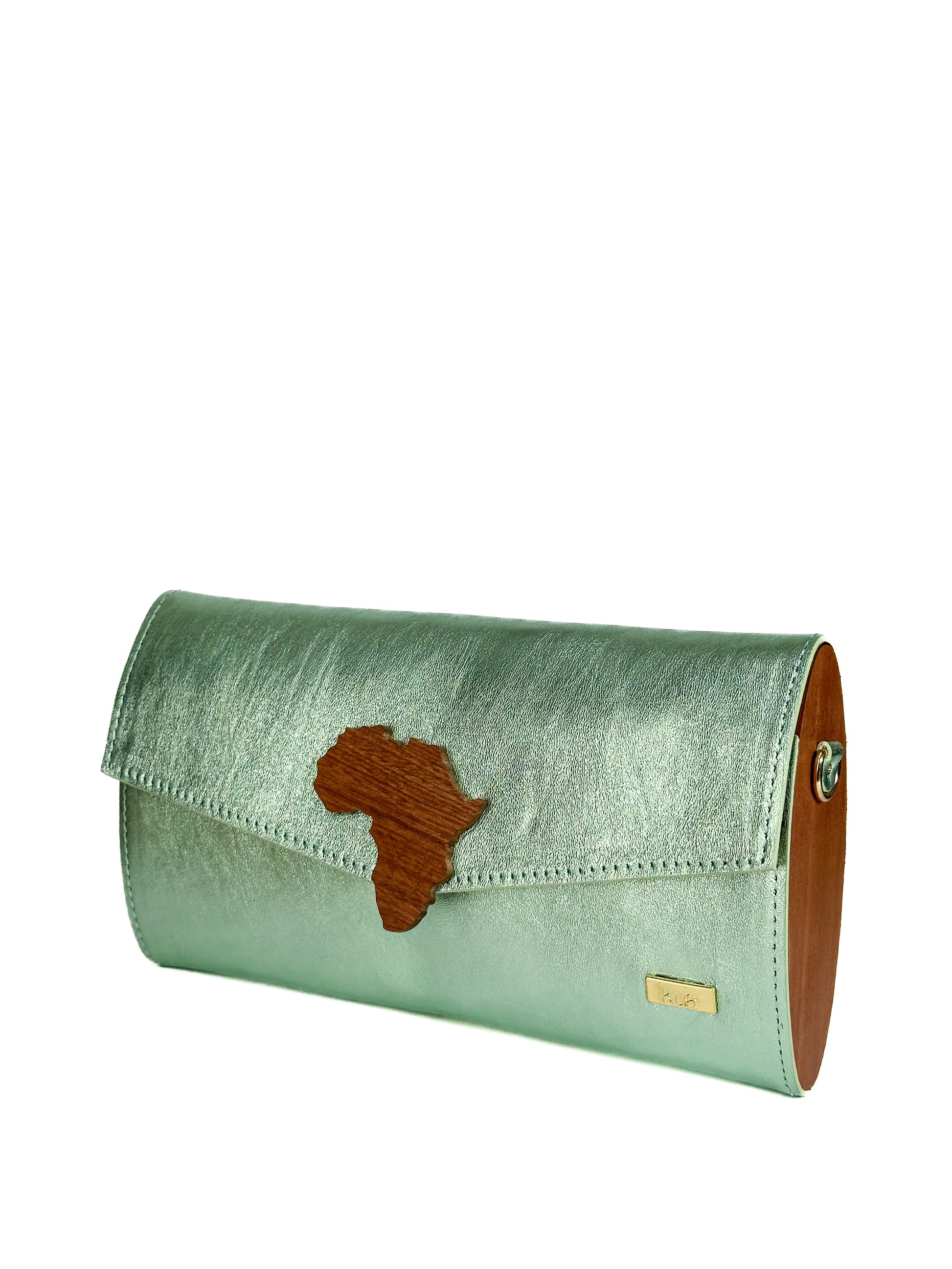 Crafted with intention and pride, the Ekuba Oko Clutch is a celebration of heritage, sustainability, and slow fashion. Handmade in Ghana using repurposed leather, this statement piece features an Africa shaped emblem on the flap and elegant side panels carved from Guarea wood — a premium, responsibly sourced African hardwood known for its strength and beauty.