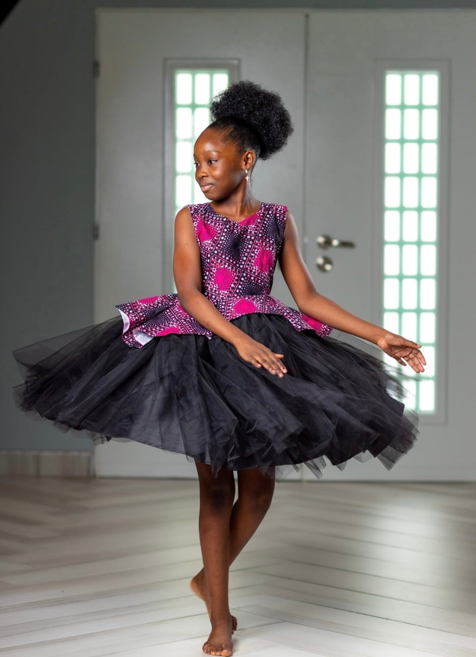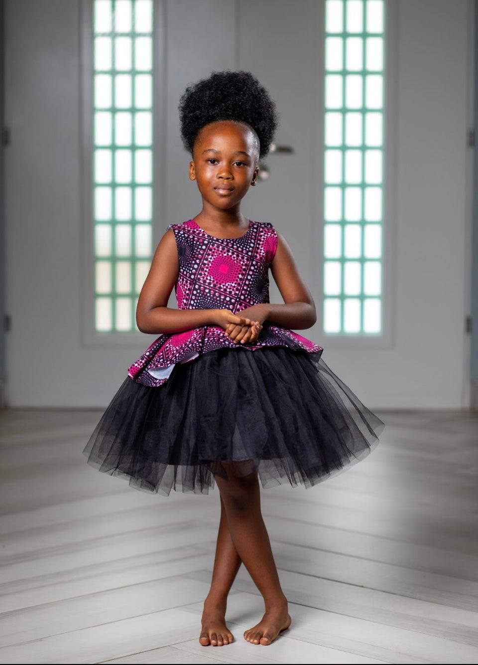 Take your formal look to new heights with the Fali Eyram dress! With a fitted top bodice and a flare bottom, made with soft tulle fabric and a unique African print, this beautiful dress is guaranteed to make you feel like royalty. Stand out and make a statement at your next special event!