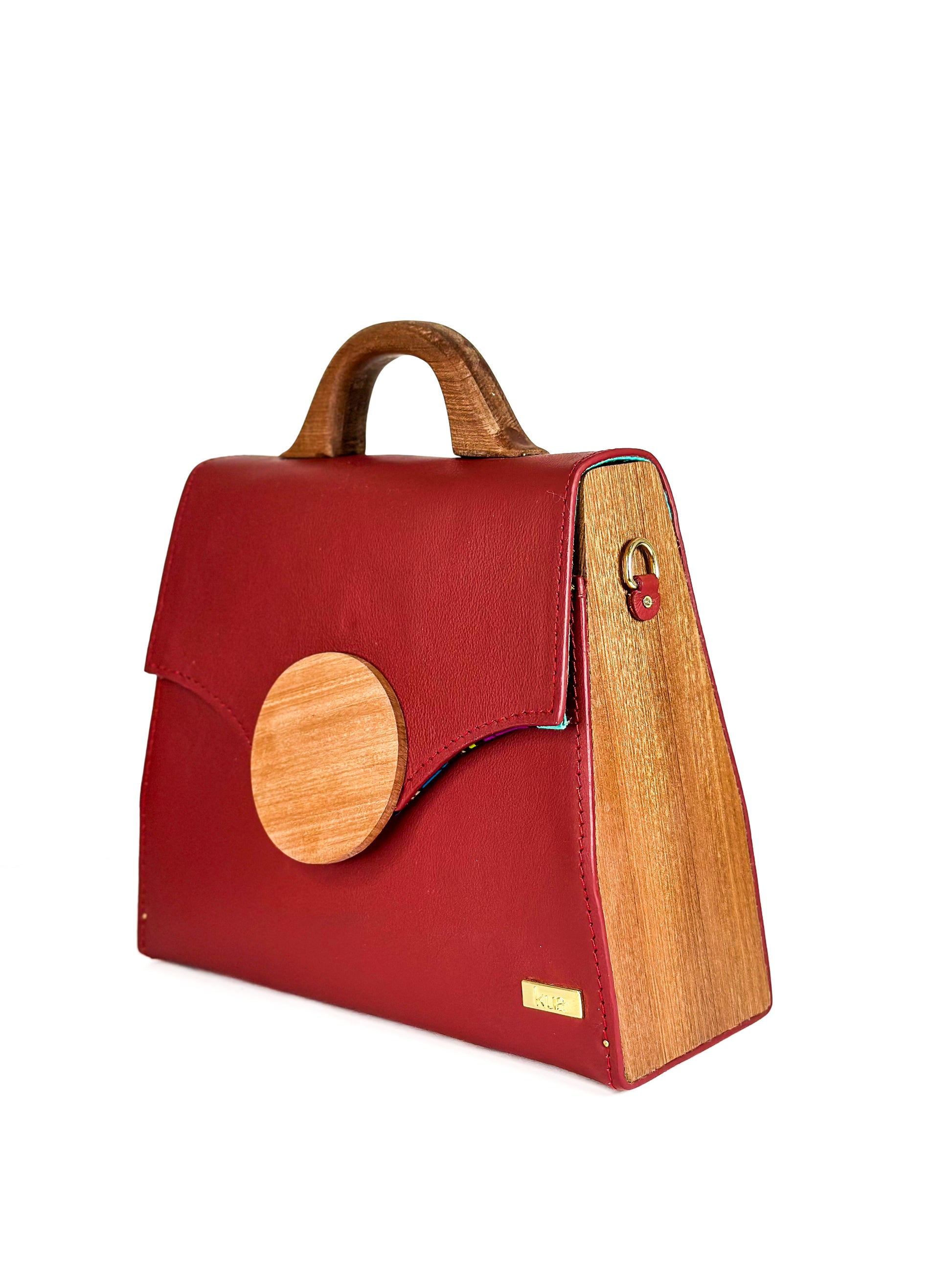 Meet the Klema Bag — a striking top-handle piece that blends elegance with meaning.Designed for the woman who leads with purpose, this bag is handcrafted in Ghana from repurposed leather and accented with rich Guarea wood, featured in both the front emblem and sculpted side panels.