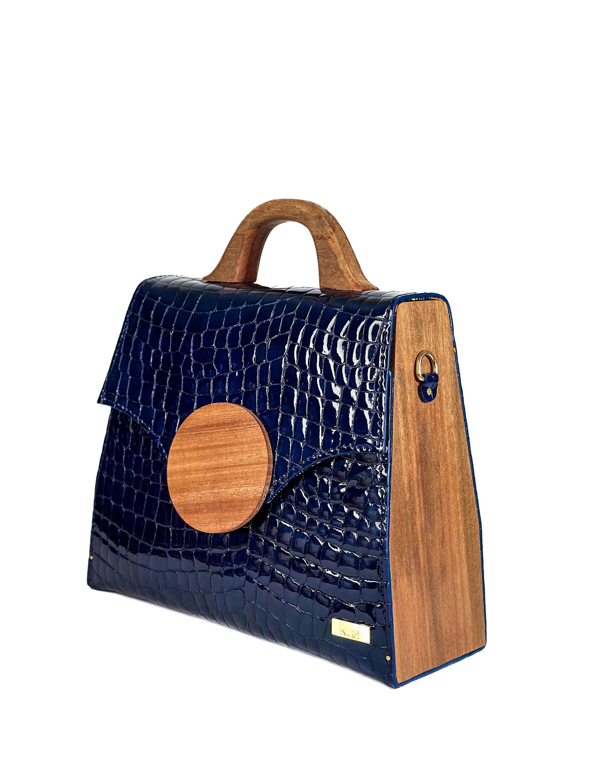 Meet the Klema Bag — a striking top-handle piece that blends elegance with meaning.Designed for the woman who leads with purpose, this bag is handcrafted in Ghana from repurposed leather and accented with rich Guarea wood, featured in both the front emblem and sculpted side panels.