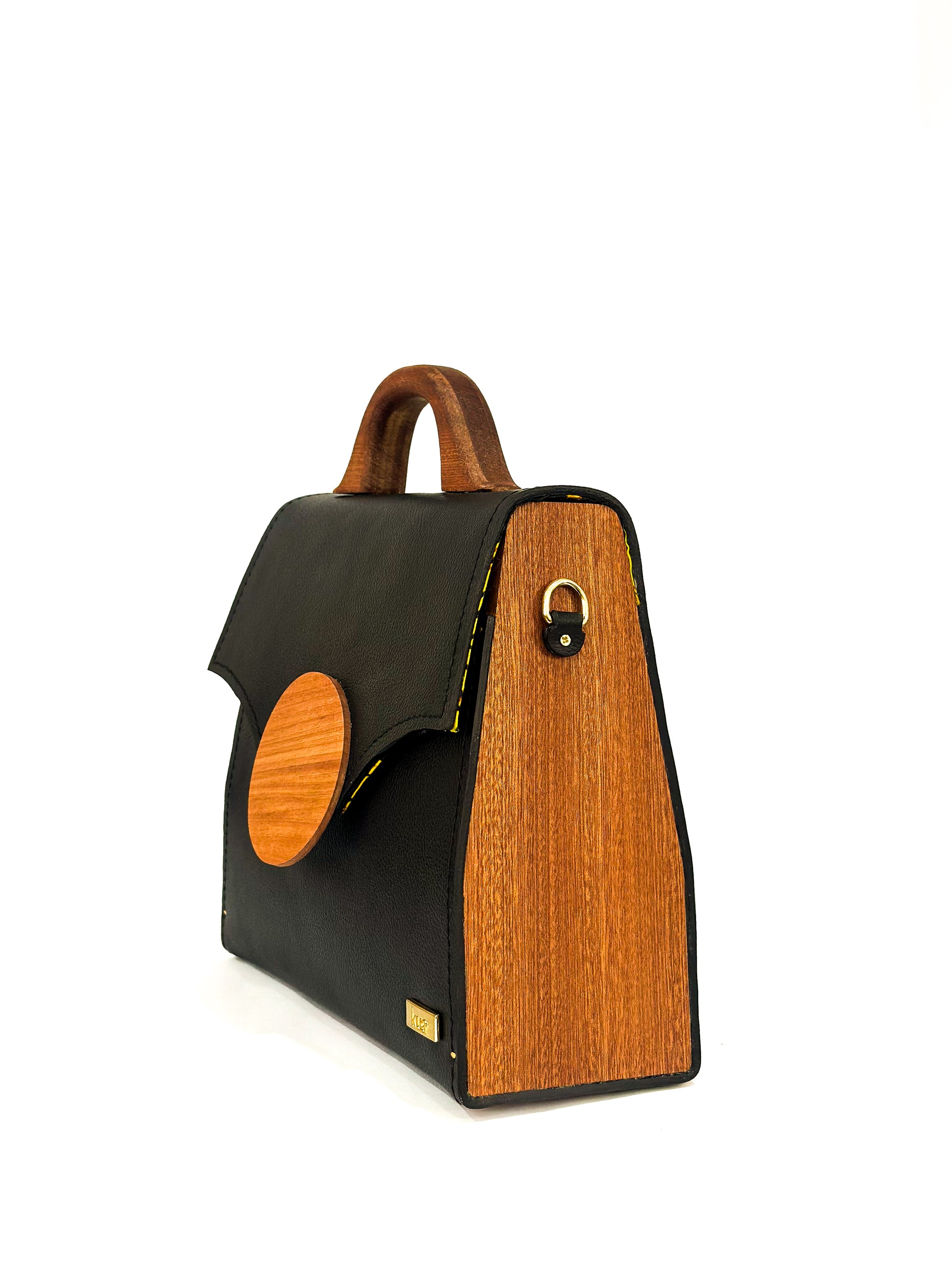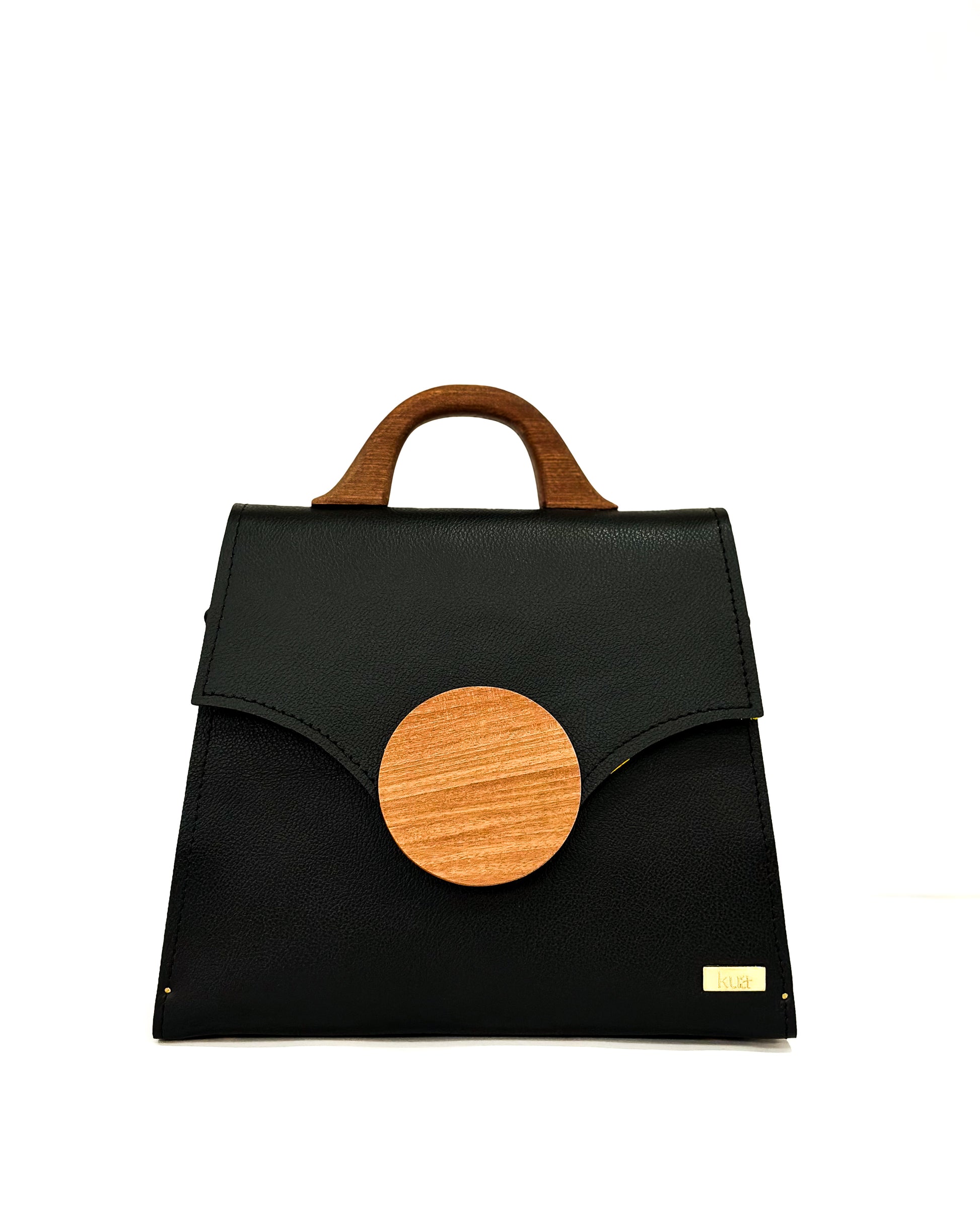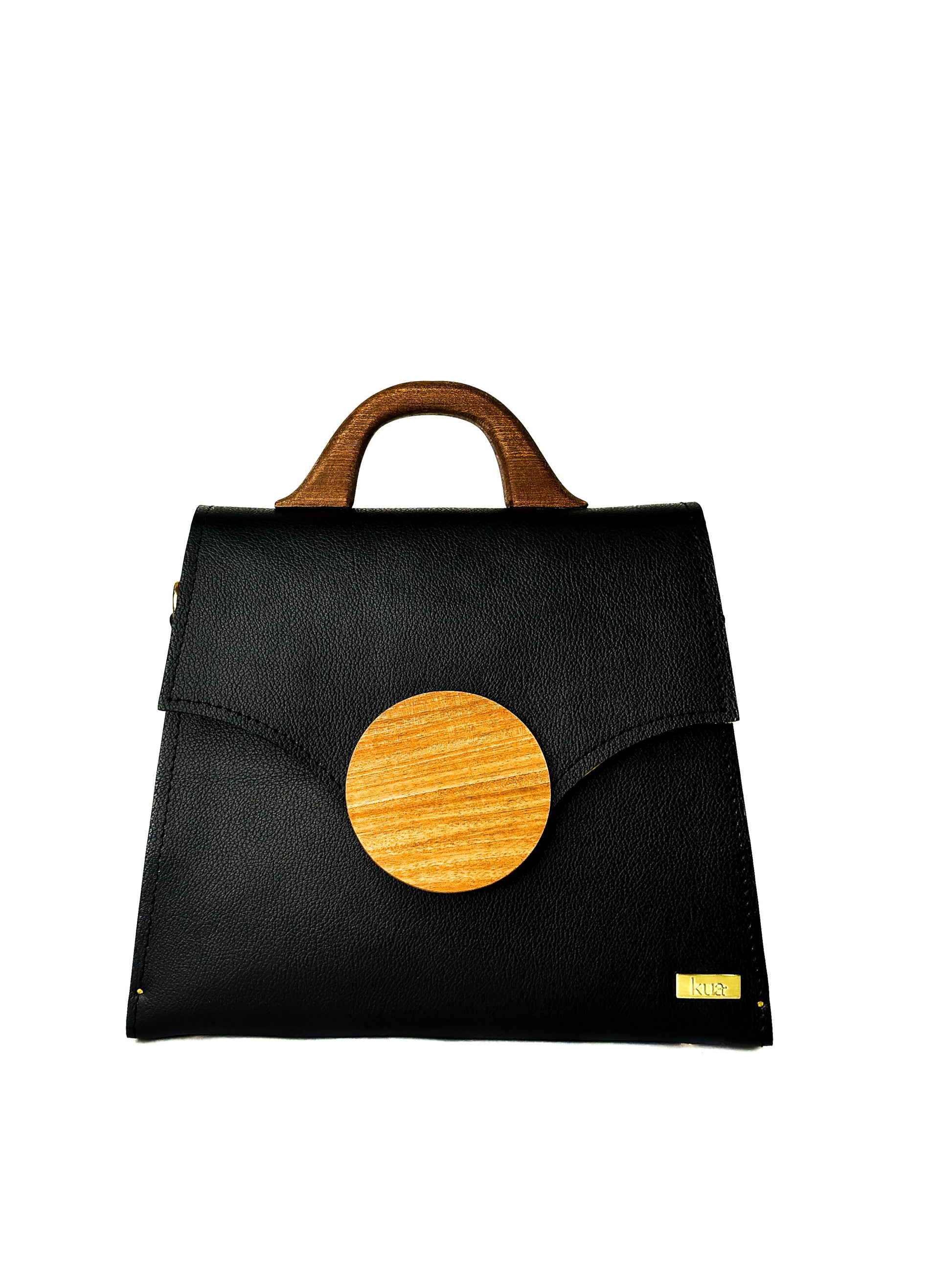 Meet the Klema Bag — a striking top-handle piece that blends elegance with meaning.Designed for the woman who leads with purpose, this bag is handcrafted in Ghana from repurposed leather and accented with rich Guarea wood, featured in both the front emblem and sculpted side panels.