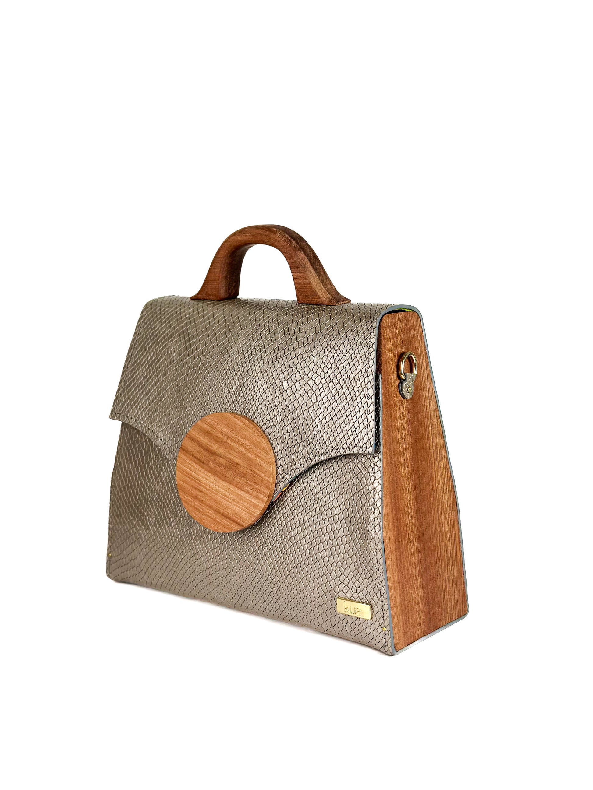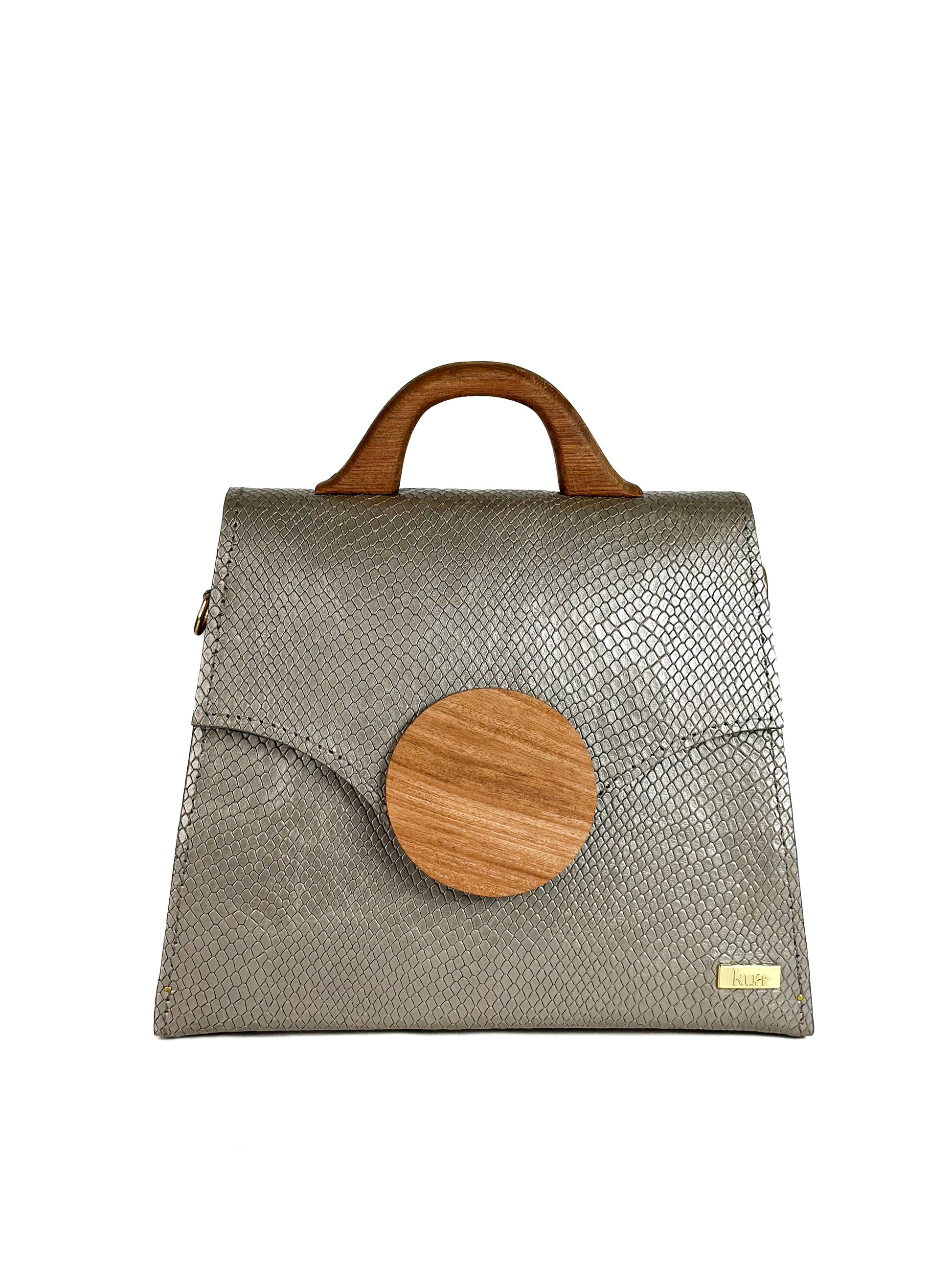 Meet the Klema Bag — a striking top-handle piece that blends elegance with meaning.Designed for the woman who leads with purpose, this bag is handcrafted in Ghana from repurposed leather and accented with rich Guarea wood, featured in both the front emblem and sculpted side panels.